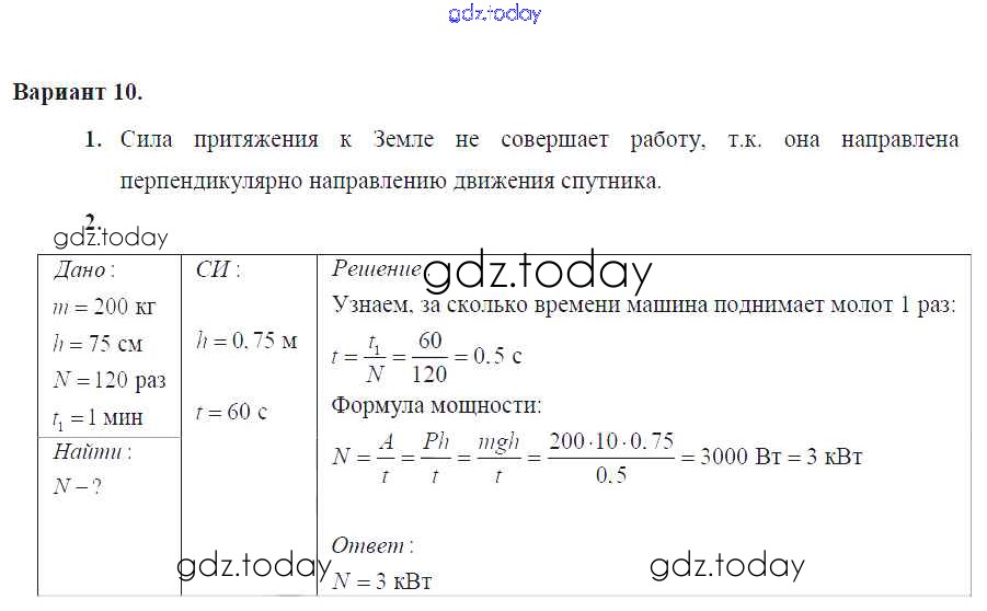 На страницах сайта gdz.today вы найдете учебный и вспомогательный материал, направленный на улучшения знаний школьной программы. ГДЗ - онлайн мир знаний СР №-9. Механическая работа. Мощность Решение к самостоятельным работам Вариант №10 Дидактическим материалам по Физике для 7 класса Марон Дрофа Вертикаль 2019