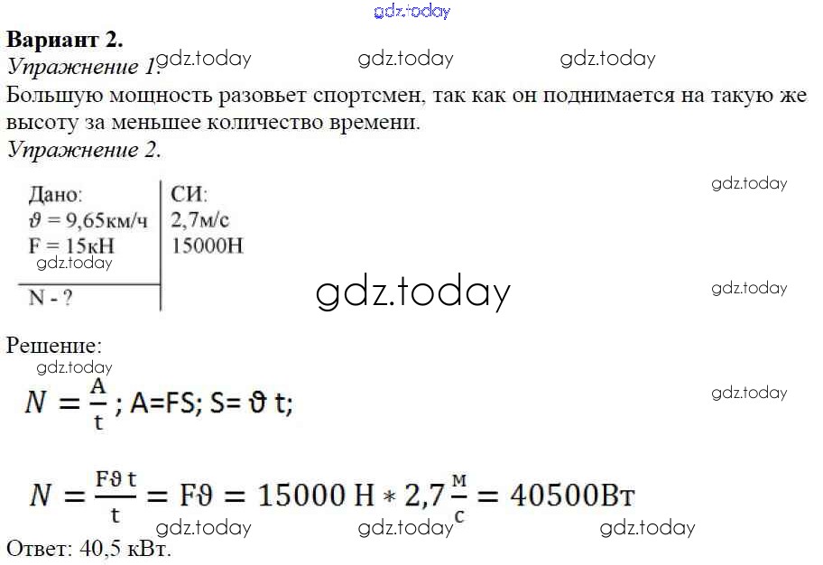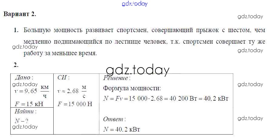 На страницах сайта gdz.today вы найдете учебный и вспомогательный материал, направленный на улучшения знаний школьной программы. ГДЗ - онлайн мир знаний СР №-9. Механическая работа. Мощность Решение к самостоятельным работам Вариант №2 Дидактическим материалам по Физике для 7 класса Марон Дрофа Вертикаль 2019