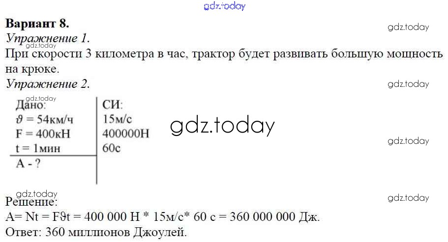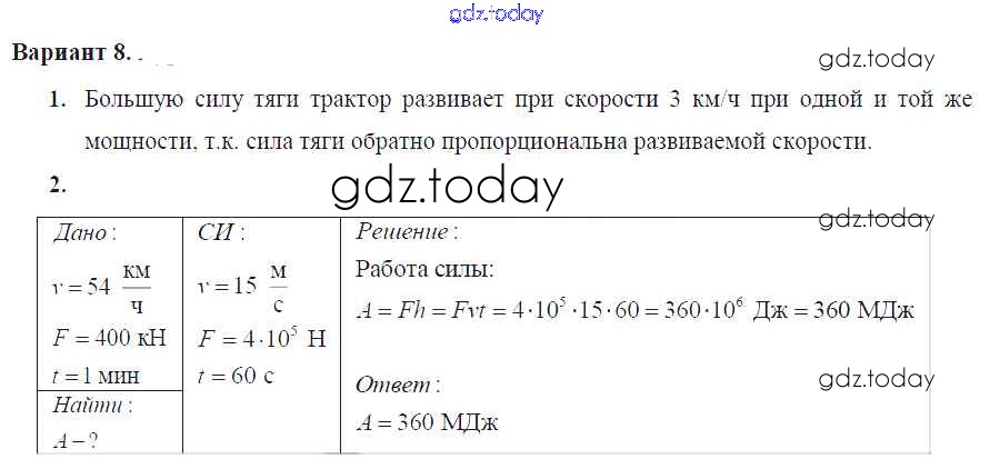 На страницах сайта gdz.today вы найдете учебный и вспомогательный материал, направленный на улучшения знаний школьной программы. ГДЗ - онлайн мир знаний СР №-9. Механическая работа. Мощность Решение к самостоятельным работам Вариант №8 Дидактическим материалам по Физике для 7 класса Марон Дрофа Вертикаль 2019