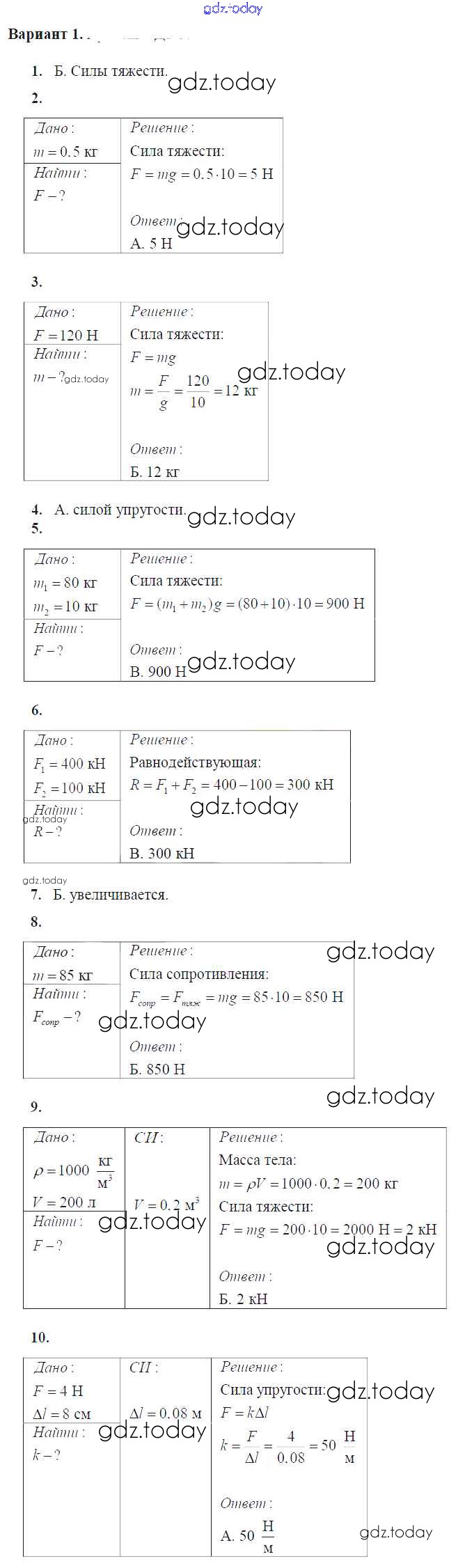 Ответы к Тест №4. Силы в природе Решение к тестам для самоконтроля Вариант №1 Дидактическим материалам по Физике для 7 класса Марон Дрофа Вертикаль 2019