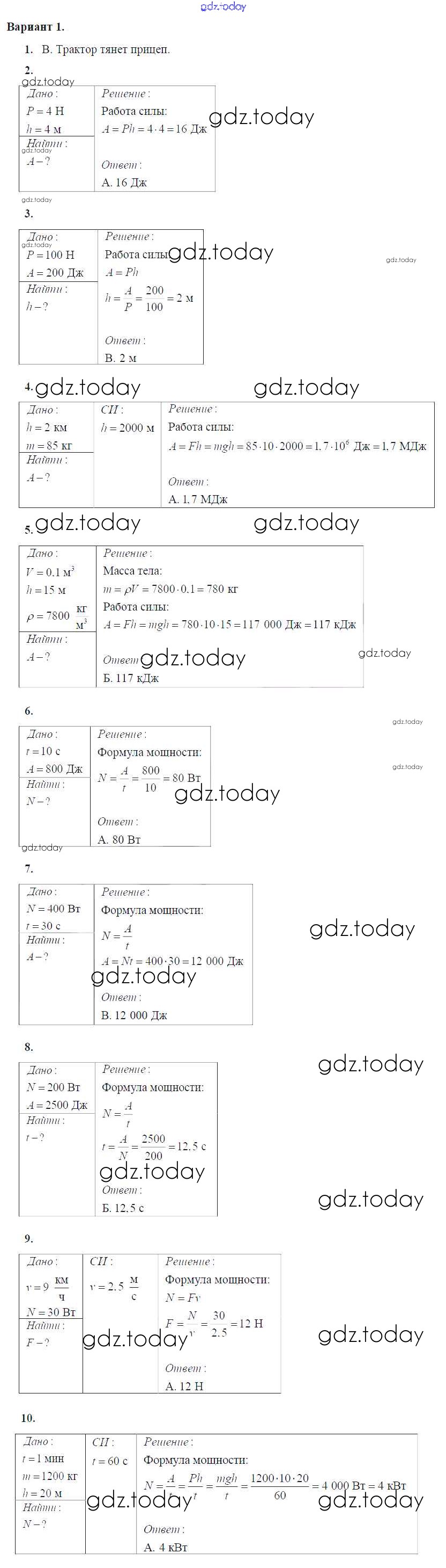 На страницах сайта gdz.today вы найдете учебный и вспомогательный материал, направленный на улучшения знаний школьной программы. ГДЗ - онлайн мир знаний Тест №8. Механическая работа и мощность Решение к тестам для самоконтроля Вариант №1 Дидактическим материалам по Физике для 7 класса Марон Дрофа Вертикаль 2019