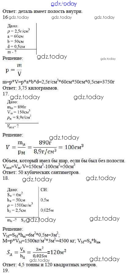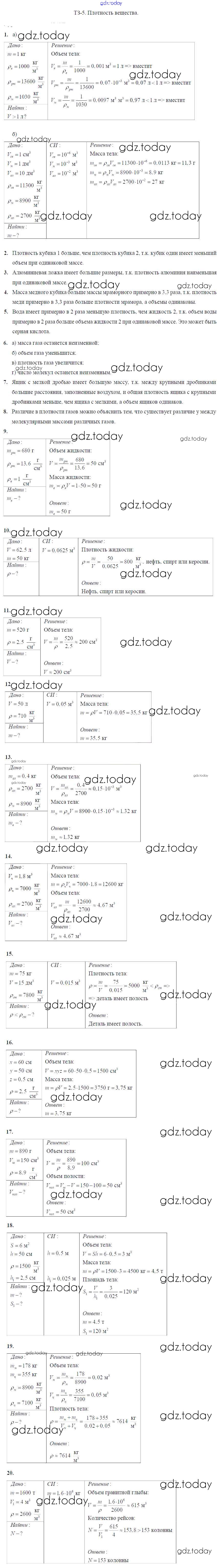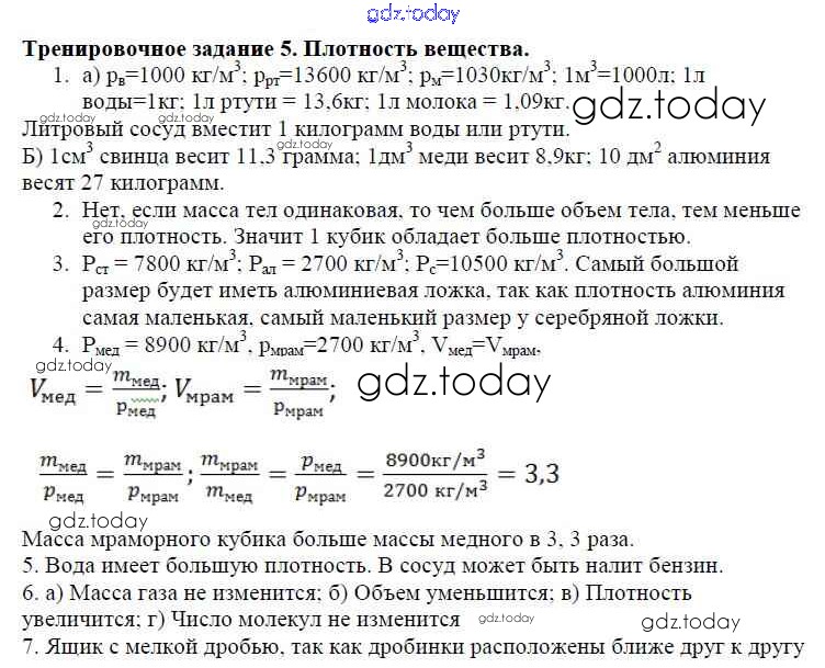 На страницах сайта gdz.today вы найдете учебный и вспомогательный материал, направленный на улучшения знаний школьной программы. ГДЗ - онлайн мир знаний Решение к тренировочным заданияи Задание №5. Плотность вещества Дидактическим материалам по Физике для 7 класса Марон Дрофа Вертикаль 2019