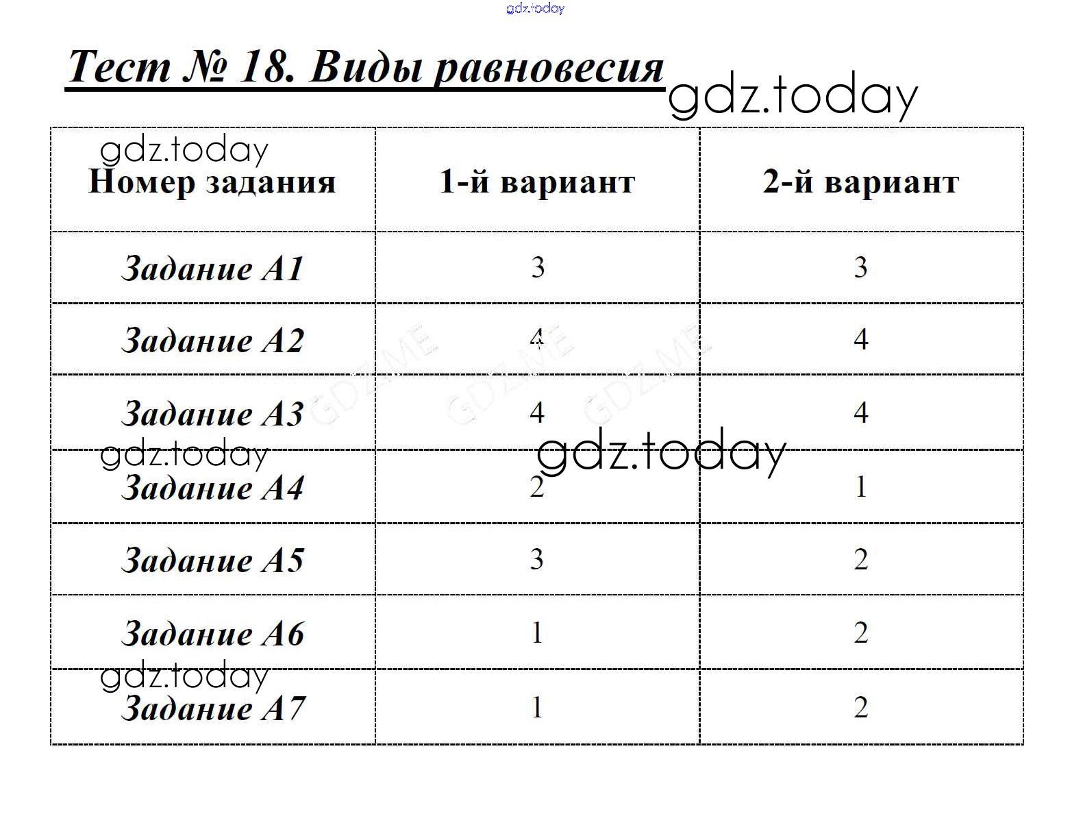 На страницах сайта gdz.today вы найдете учебный и вспомогательный материал, направленный на улучшения знаний школьной программы. ГДЗ - онлайн мир знаний Решение к тестам Тест 18. Виды равновесия Контрольно-измерительным материалам (КИМ) по Физике для 7 класса Бобошина Экзамен 2014