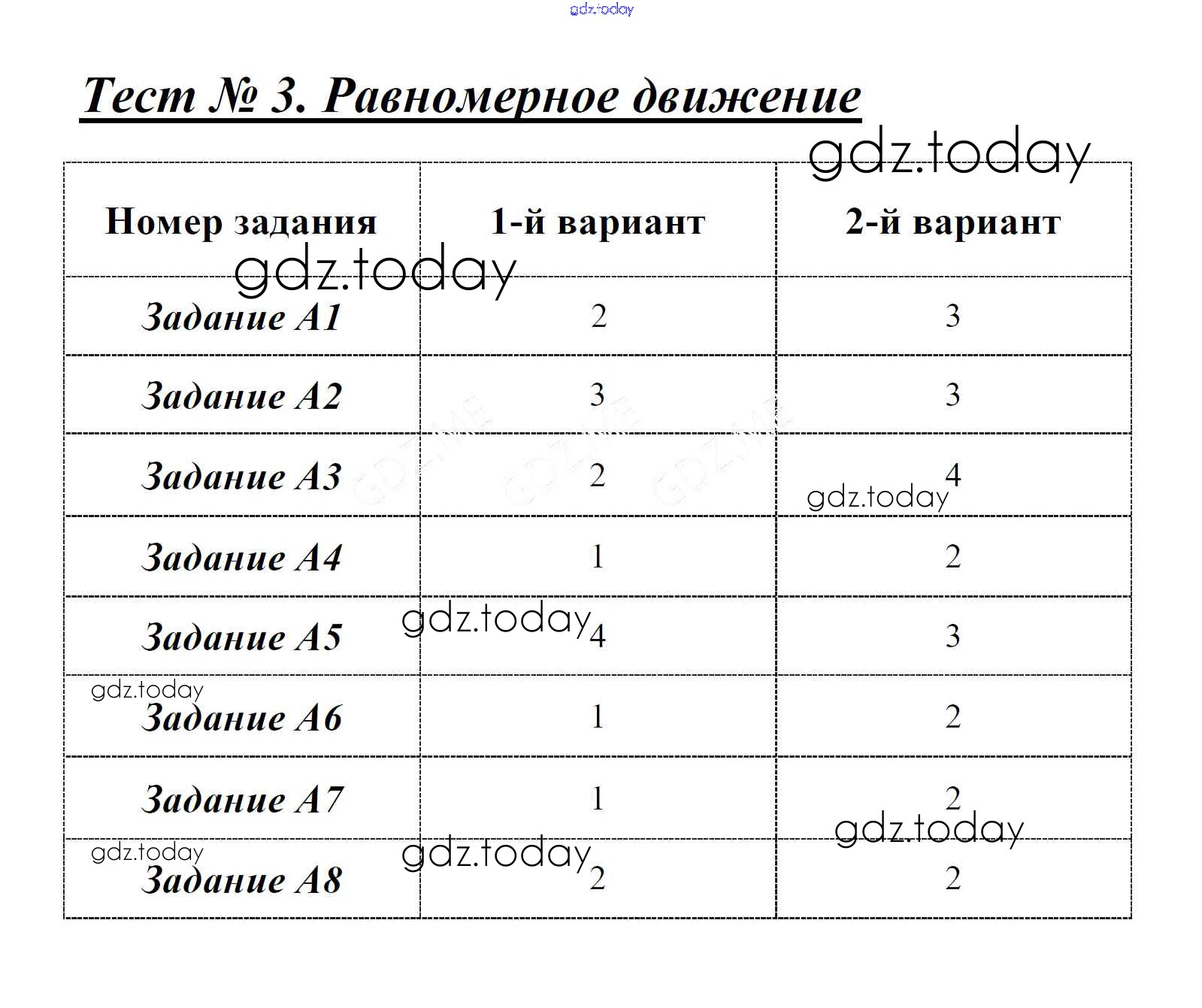 На страницах сайта gdz.today вы найдете учебный и вспомогательный материал, направленный на улучшения знаний школьной программы. ГДЗ - онлайн мир знаний Решение к тестам Тест 3. Равномерное движение Контрольно-измерительным материалам (КИМ) по Физике для 7 класса Бобошина Экзамен 2014