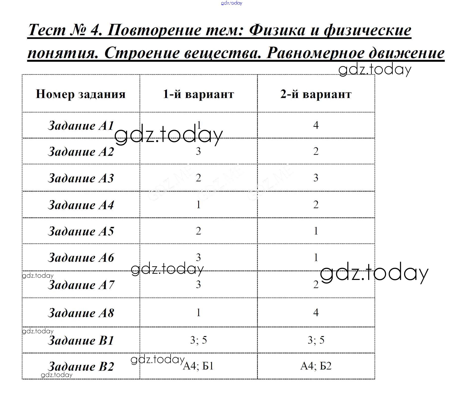 На страницах сайта gdz.today вы найдете учебный и вспомогательный материал, направленный на улучшения знаний школьной программы. ГДЗ - онлайн мир знаний Решение к тестам Тест 4. Повторение тем - Физика и физические понятия и др. Контрольно-измерительным материалам (КИМ) по Физике для 7 класса Бобошина Экзамен 2014