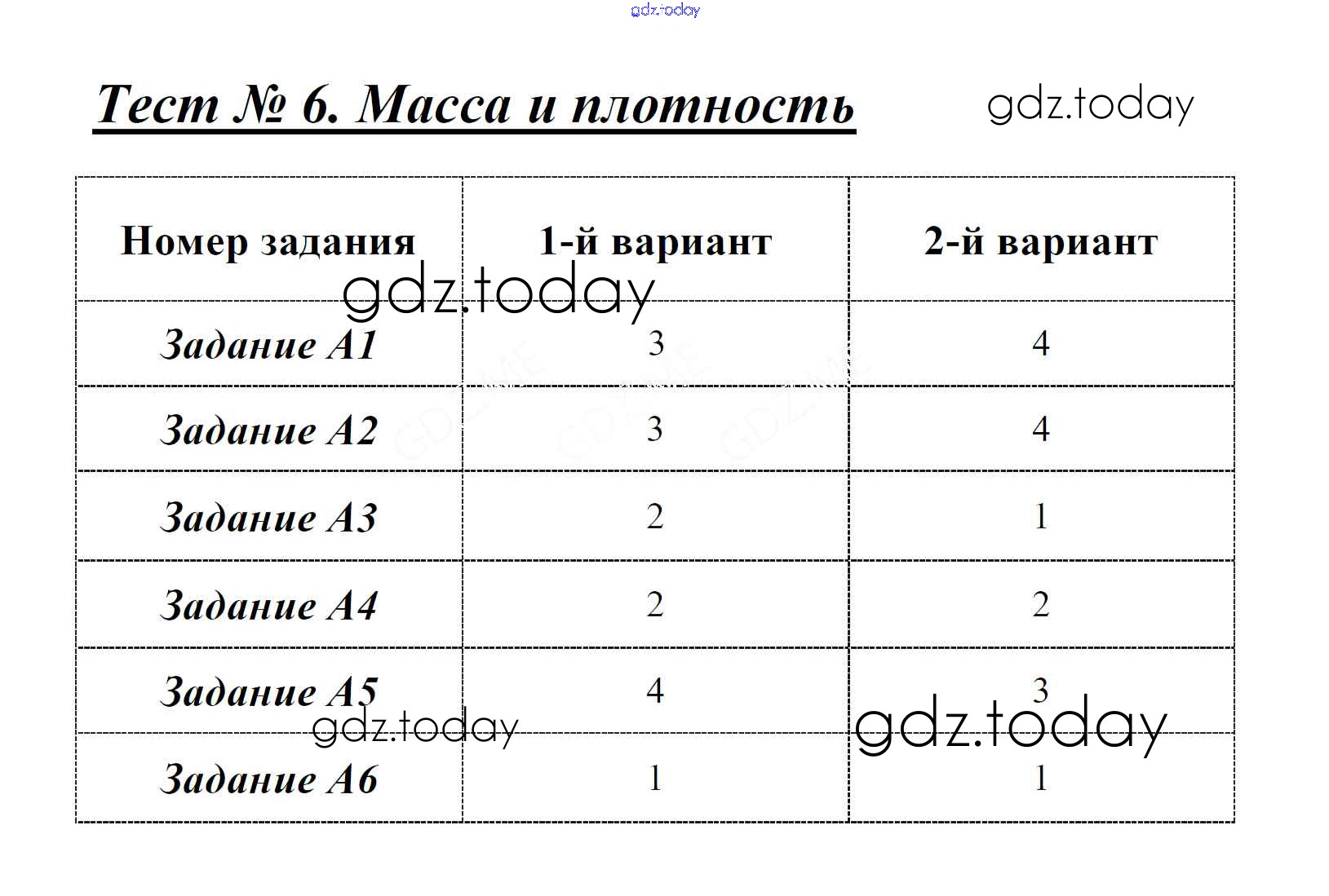 На страницах сайта gdz.today вы найдете учебный и вспомогательный материал, направленный на улучшения знаний школьной программы. ГДЗ - онлайн мир знаний Решение к тестам Тест 6. Масса и плотность Контрольно-измерительным материалам (КИМ) по Физике для 7 класса Бобошина Экзамен 2014