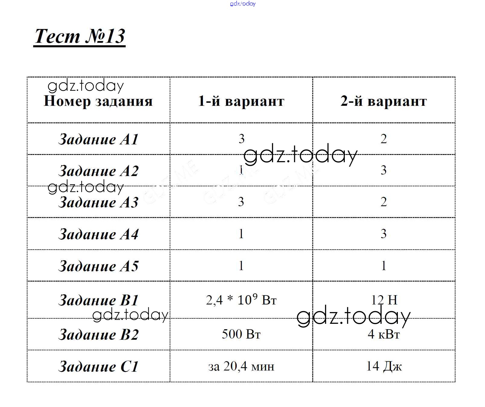 На страницах сайта gdz.today вы найдете учебный и вспомогательный материал, направленный на улучшения знаний школьной программы. ГДЗ - онлайн мир знаний Решение к тестам Тест 13. Механическая работа и мощность Контрольно-измерительным материалам (КИМ) по Физике для 7 класса Зорин ВАКО 2017