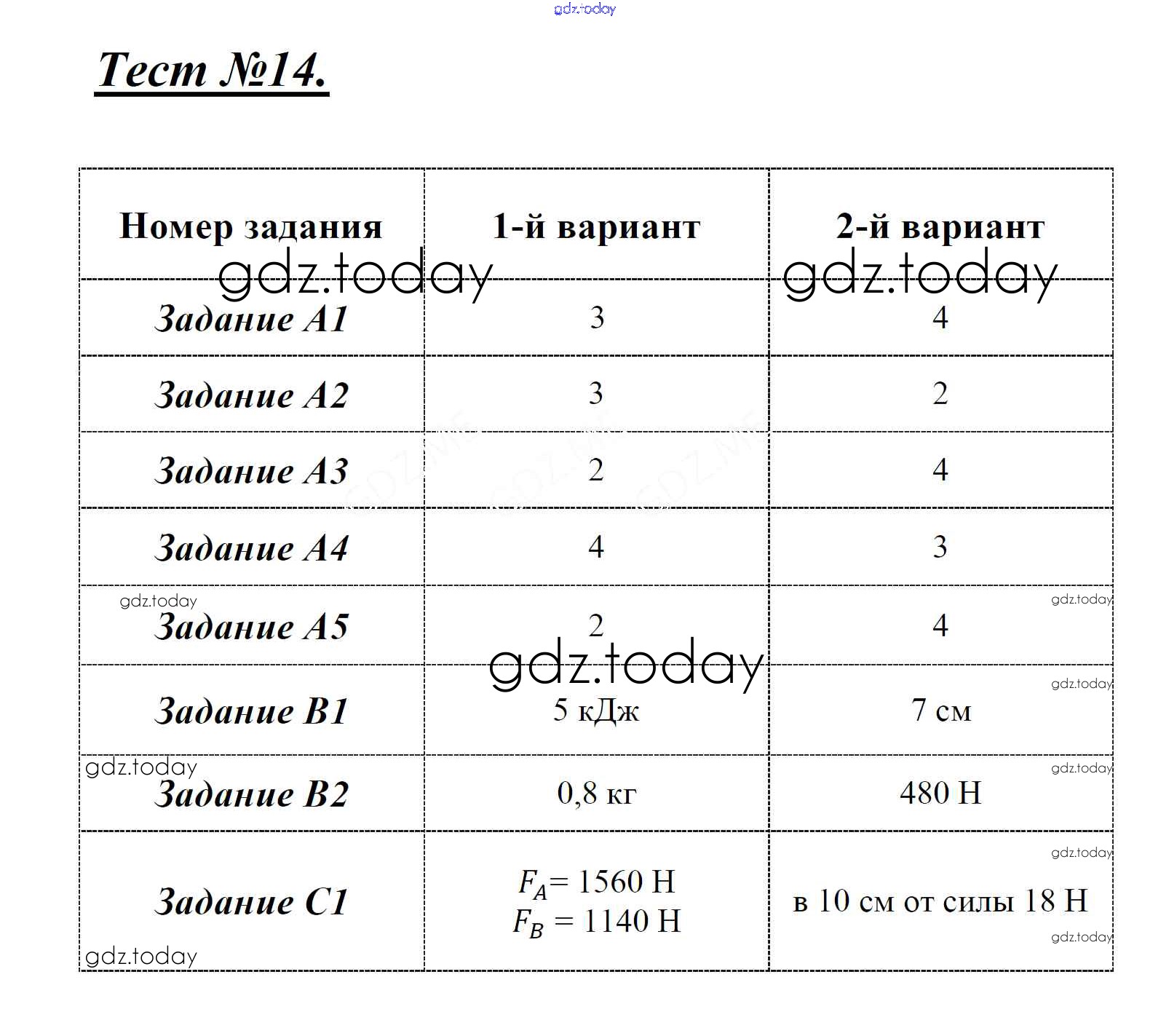 На страницах сайта gdz.today вы найдете учебный и вспомогательный материал, направленный на улучшения знаний школьной программы. ГДЗ - онлайн мир знаний Решение к тестам Тест 14. Простые механизмы Контрольно-измерительным материалам (КИМ) по Физике для 7 класса Зорин ВАКО 2017