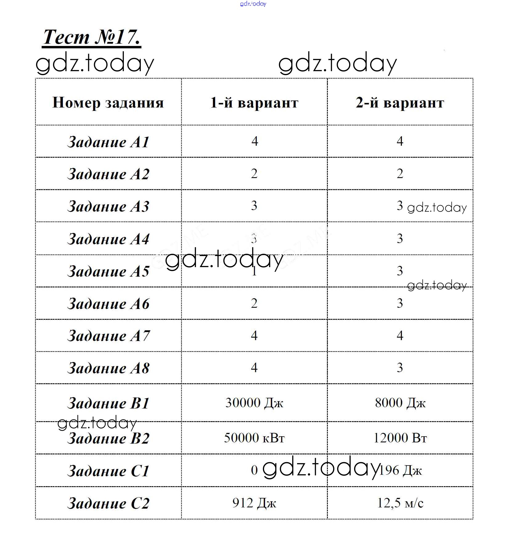 На страницах сайта gdz.today вы найдете учебный и вспомогательный материал, направленный на улучшения знаний школьной программы. ГДЗ - онлайн мир знаний Решение к тестам Тест 17. Тренировочный Контрольно-измерительным материалам (КИМ) по Физике для 7 класса Зорин ВАКО 2017