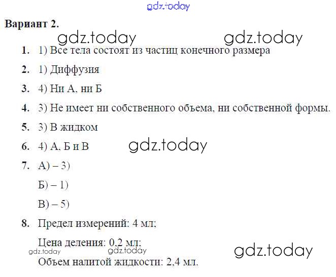 Ответы к Глава 1. Первоначальные сведения о строении вещества Решение к контрольным работам Вар. 2 Контрольным и самостоятельным работам по Физике для 7 класса Громцева Экзамен УМК 2020