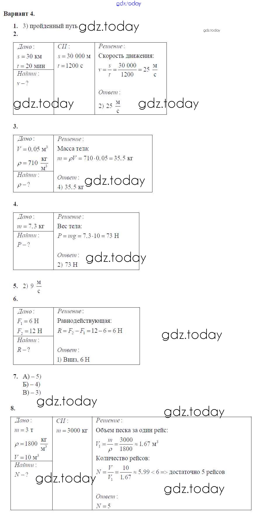 Ответы к Глава 2. Взаимодействие тел Решение к контрольным работам Вар. 4 Контрольным и самостоятельным работам по Физике для 7 класса Громцева Экзамен УМК 2020