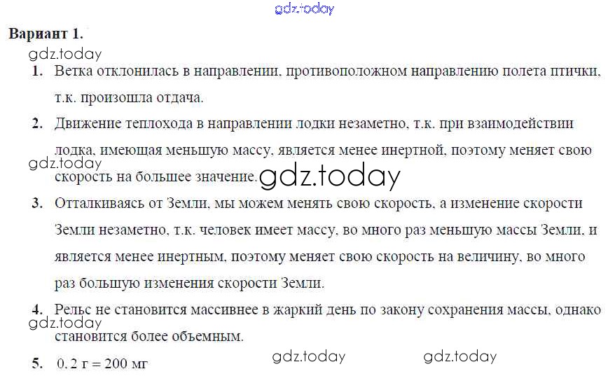 На страницах сайта gdz.today вы найдете учебный и вспомогательный материал, направленный на улучшения знаний школьной программы. ГДЗ - онлайн мир знаний СР №14. Инерция. Взаимодействие тел. Масса тела. Единицы массы Решение к самостоятельным работам Вар. 1 Контрольным и самостоятельным работам по Физике для 7 класса Громцева Экзамен УМК 2020
