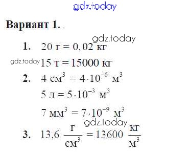 Ответы к СР №15. Плотность вещества Решение к самостоятельным работам Вар. 1 Контрольным и самостоятельным работам по Физике для 7 класса Громцева Экзамен УМК 2020