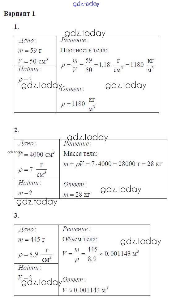 На страницах сайта gdz.today вы найдете учебный и вспомогательный материал, направленный на улучшения знаний школьной программы. ГДЗ - онлайн мир знаний СР №16. Расчет массы и объема тела по его плотности Решение к самостоятельным работам Вар. 1 Контрольным и самостоятельным работам по Физике для 7 класса Громцева Экзамен УМК 2020