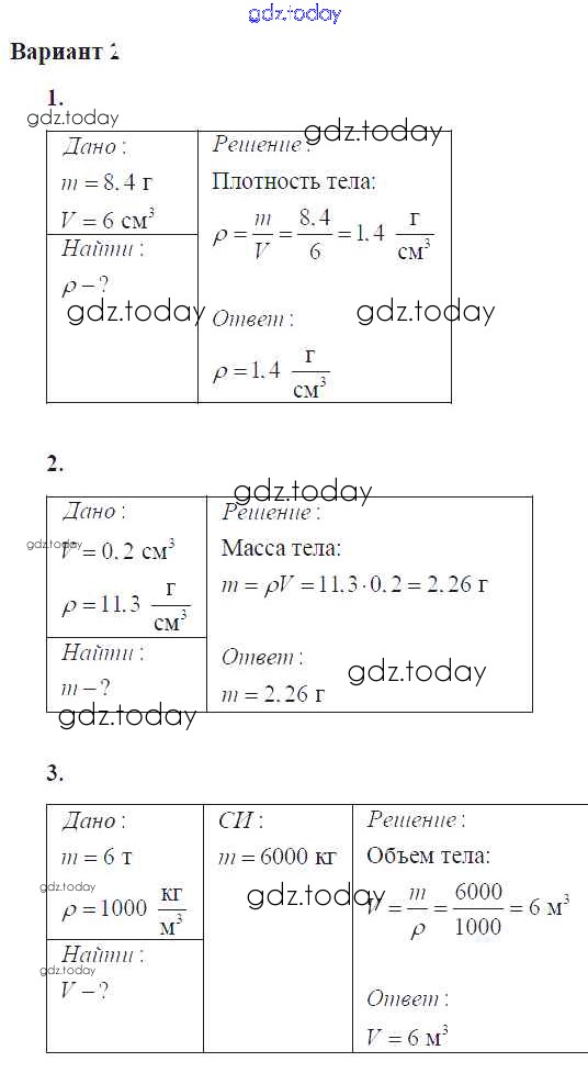 На страницах сайта gdz.today вы найдете учебный и вспомогательный материал, направленный на улучшения знаний школьной программы. ГДЗ - онлайн мир знаний СР №16. Расчет массы и объема тела по его плотности Решение к самостоятельным работам Вар. 2 Контрольным и самостоятельным работам по Физике для 7 класса Громцева Экзамен УМК 2020