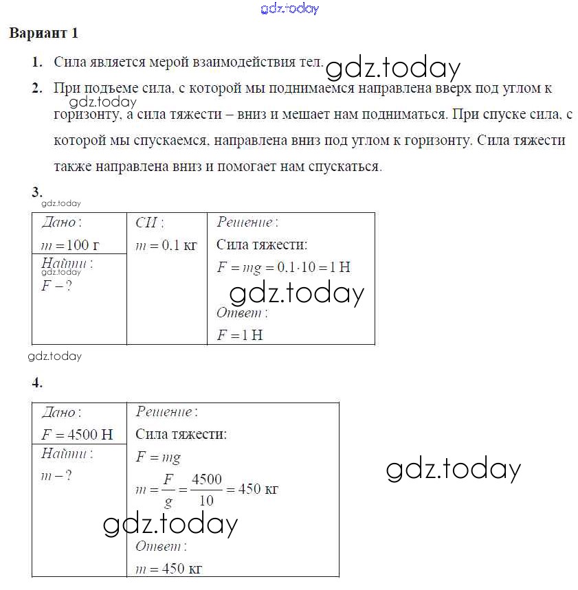 На страницах сайта gdz.today вы найдете учебный и вспомогательный материал, направленный на улучшения знаний школьной программы. ГДЗ - онлайн мир знаний СР №17. Сила. Явление тяготения. Сила тяжести Решение к самостоятельным работам Вар. 1 Контрольным и самостоятельным работам по Физике для 7 класса Громцева Экзамен УМК 2020