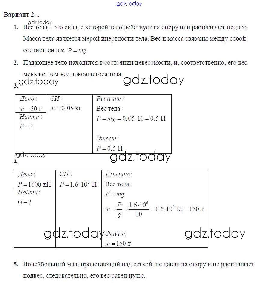 На страницах сайта gdz.today вы найдете учебный и вспомогательный материал, направленный на улучшения знаний школьной программы. ГДЗ - онлайн мир знаний СР №19. Вес тела Решение к самостоятельным работам Вар. 2 Контрольным и самостоятельным работам по Физике для 7 класса Громцева Экзамен УМК 2020
