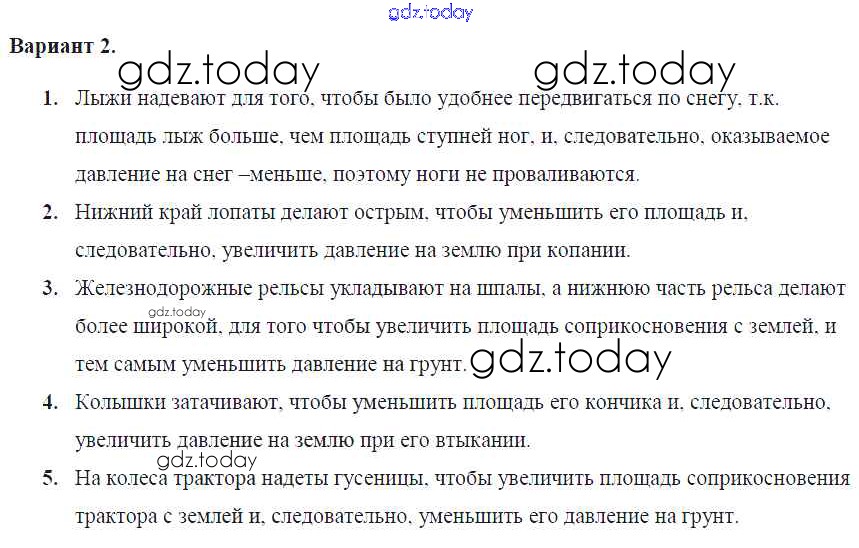 На страницах сайта gdz.today вы найдете учебный и вспомогательный материал, направленный на улучшения знаний школьной программы. ГДЗ - онлайн мир знаний СР №25. Способы уменьшения и увеличения давления Решение к самостоятельным работам Вар. 2 Контрольным и самостоятельным работам по Физике для 7 класса Громцева Экзамен УМК 2020