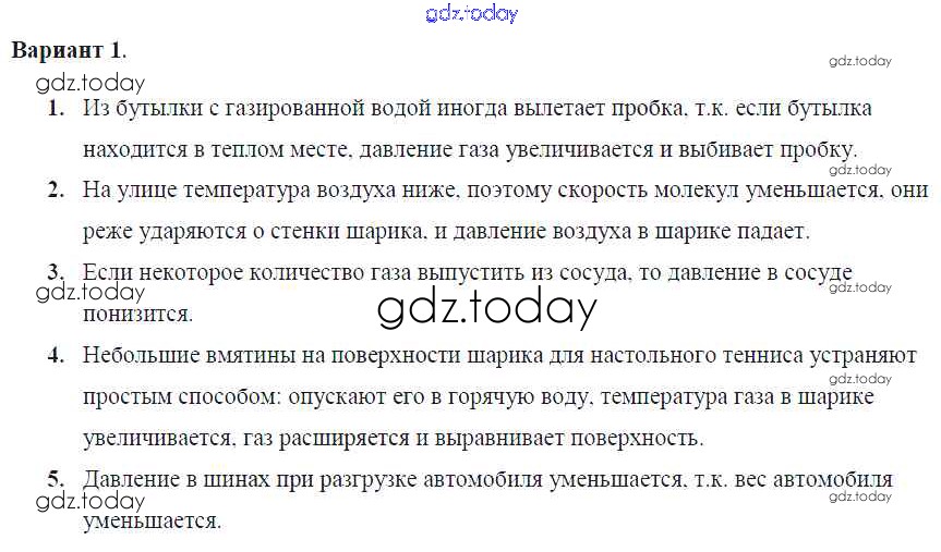 На страницах сайта gdz.today вы найдете учебный и вспомогательный материал, направленный на улучшения знаний школьной программы. ГДЗ - онлайн мир знаний СР №26. Давление газа Решение к самостоятельным работам Вар. 1 Контрольным и самостоятельным работам по Физике для 7 класса Громцева Экзамен УМК 2020