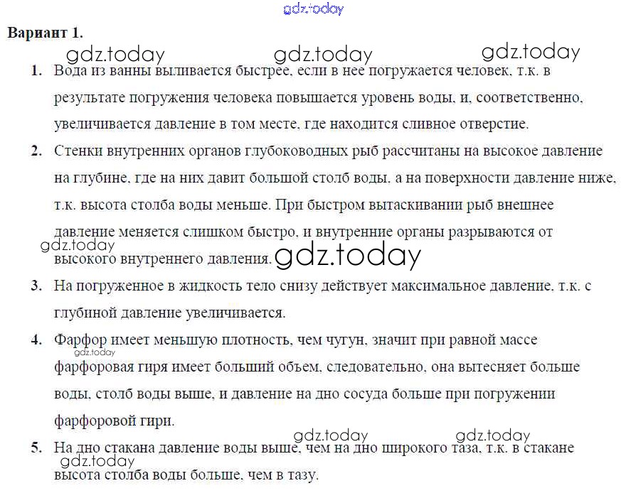 На страницах сайта gdz.today вы найдете учебный и вспомогательный материал, направленный на улучшения знаний школьной программы. ГДЗ - онлайн мир знаний СР №28. Давление в жидкости и газе Решение к самостоятельным работам Вар. 1 Контрольным и самостоятельным работам по Физике для 7 класса Громцева Экзамен УМК 2020