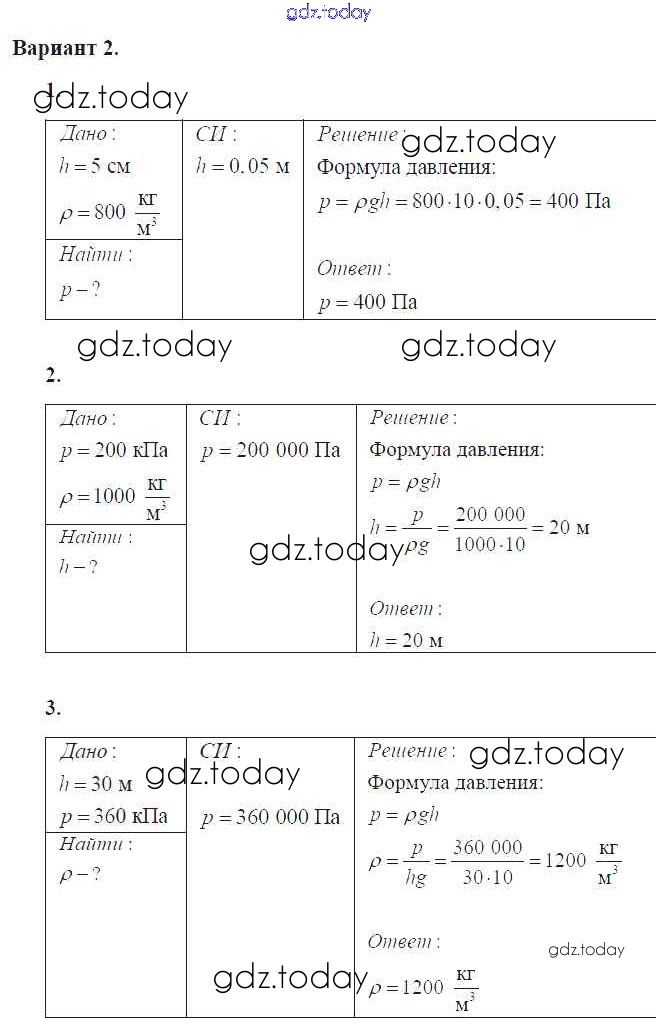 На страницах сайта gdz.today вы найдете учебный и вспомогательный материал, направленный на улучшения знаний школьной программы. ГДЗ - онлайн мир знаний СР №29. Расчет давления жидкости на дно и стенки сосуда Решение к самостоятельным работам Вар. 2 Контрольным и самостоятельным работам по Физике для 7 класса Громцева Экзамен УМК 2020