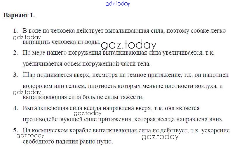 На страницах сайта gdz.today вы найдете учебный и вспомогательный материал, направленный на улучшения знаний школьной программы. ГДЗ - онлайн мир знаний СР №35. Действие жидкости и газа на погруженное в них тело Решение к самостоятельным работам Вар. 1 Контрольным и самостоятельным работам по Физике для 7 класса Громцева Экзамен УМК 2020