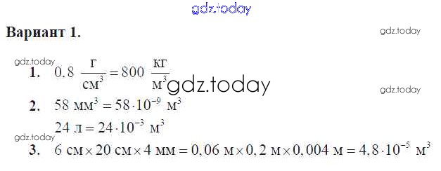 Ответы к СР №36. Единицы измерения плотности и объема СИ Решение к самостоятельным работам Вар. 1 Контрольным и самостоятельным работам по Физике для 7 класса Громцева Экзамен УМК 2020