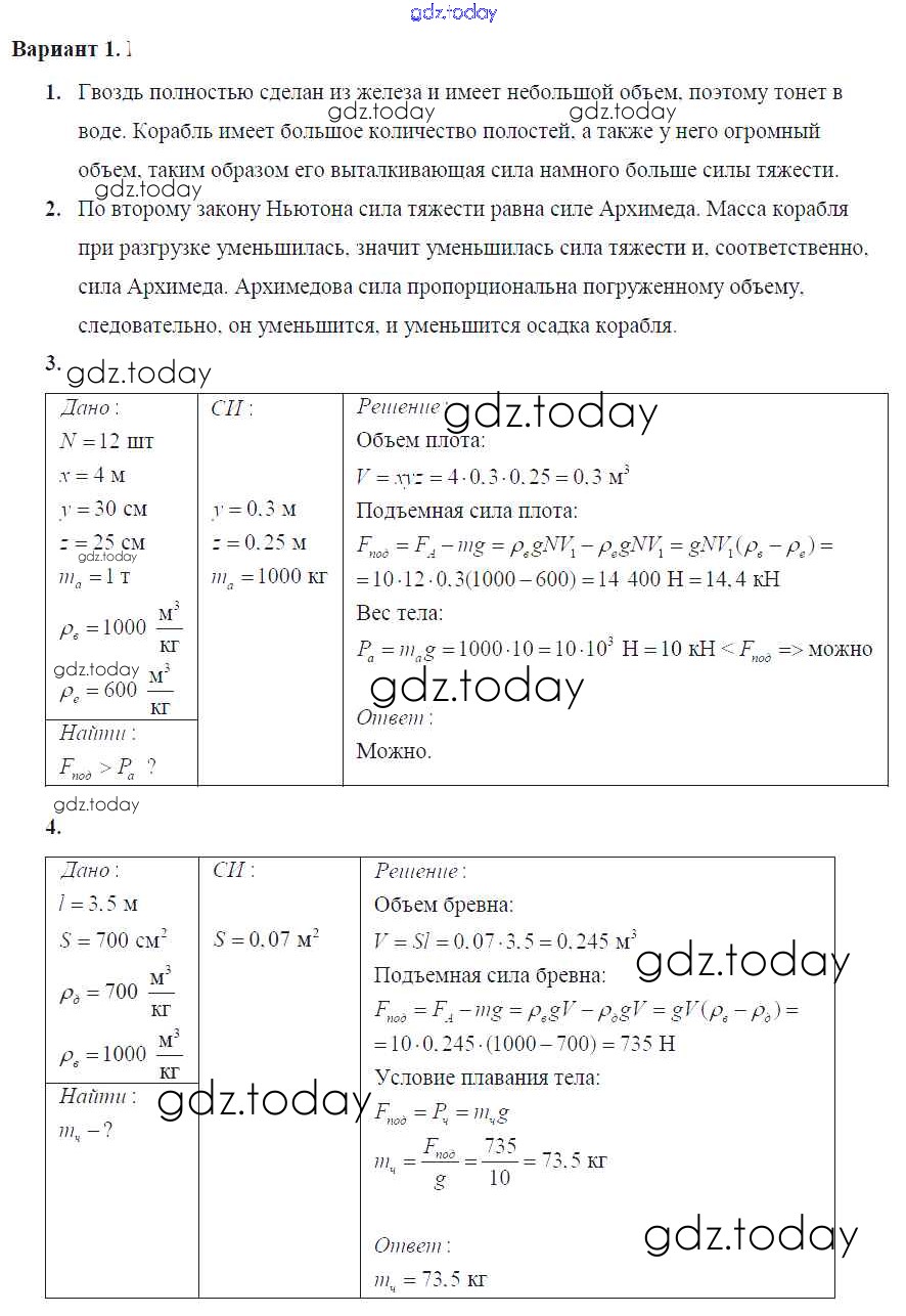 Ответы к СР №39. Плавание судов Решение к самостоятельным работам Вар. 1 Контрольным и самостоятельным работам по Физике для 7 класса Громцева Экзамен УМК 2020