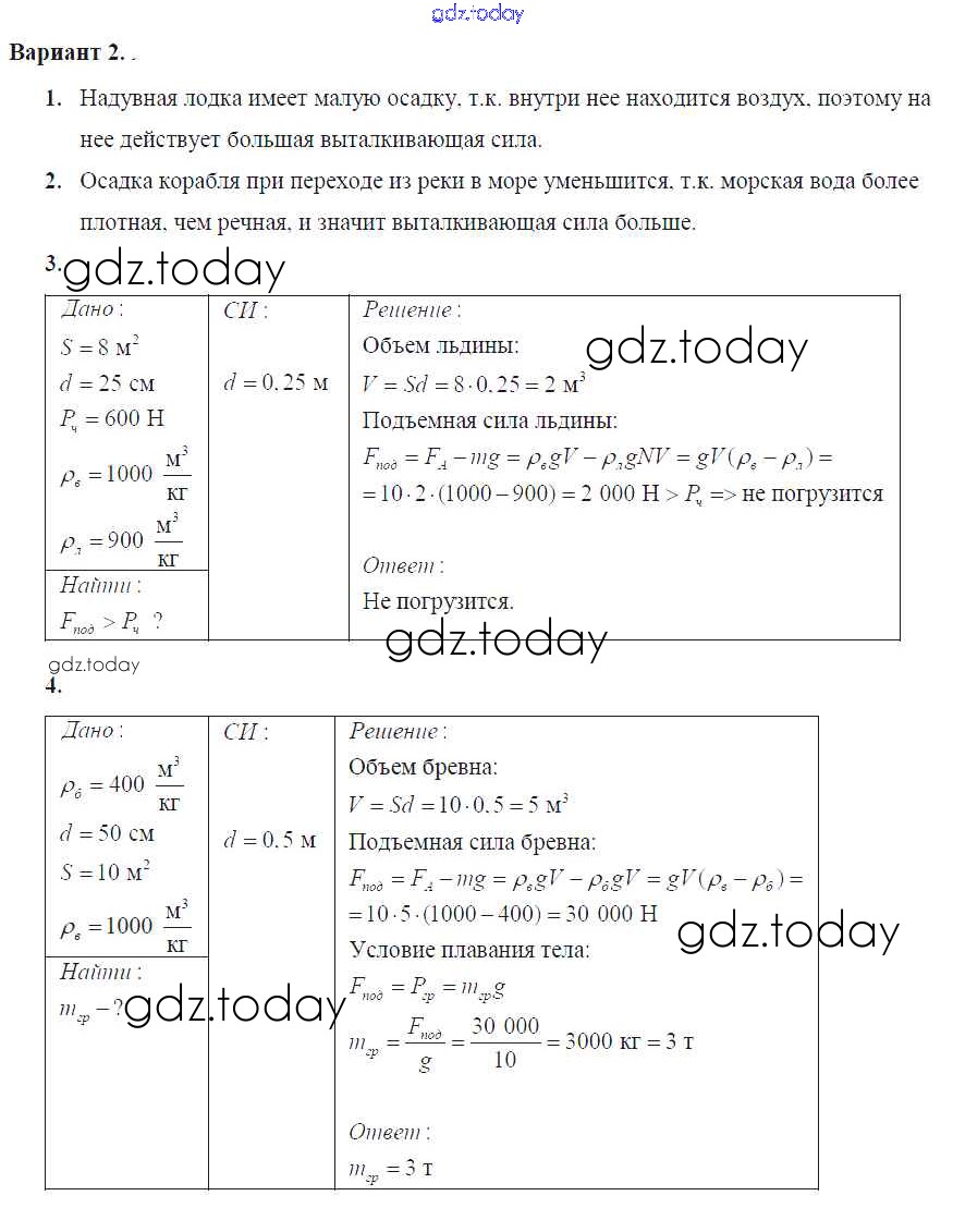 Ответы к СР №39. Плавание судов Решение к самостоятельным работам Вар. 2 Контрольным и самостоятельным работам по Физике для 7 класса Громцева Экзамен УМК 2020