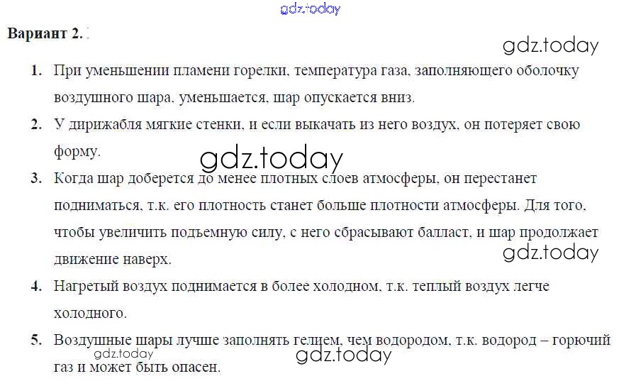 На страницах сайта gdz.today вы найдете учебный и вспомогательный материал, направленный на улучшения знаний школьной программы. ГДЗ - онлайн мир знаний СР №40. Воздухоплавание Решение к самостоятельным работам Вар. 2 Контрольным и самостоятельным работам по Физике для 7 класса Громцева Экзамен УМК 2020