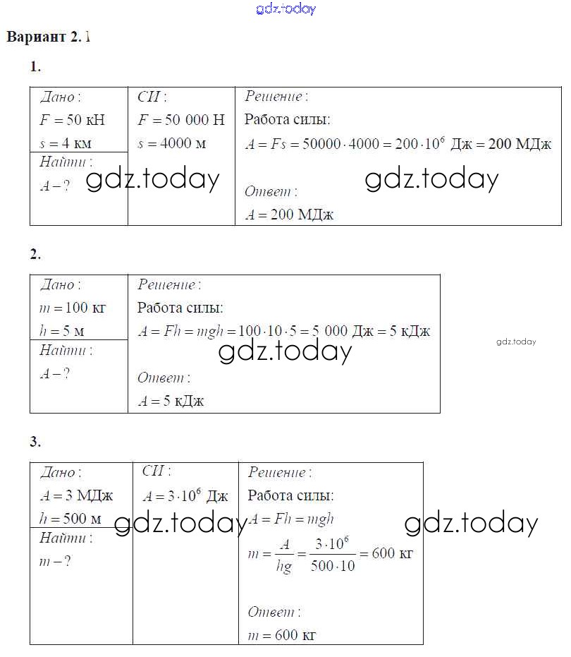 Ответы к СР №41. Механическая работа. Единицы работы Решение к самостоятельным работам Вар. 2 Контрольным и самостоятельным работам по Физике для 7 класса Громцева Экзамен УМК 2020
