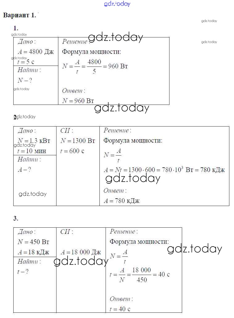 Ответы к СР №42. Мощность. Единицы мощности Решение к самостоятельным работам Вар. 1 Контрольным и самостоятельным работам по Физике для 7 класса Громцева Экзамен УМК 2020