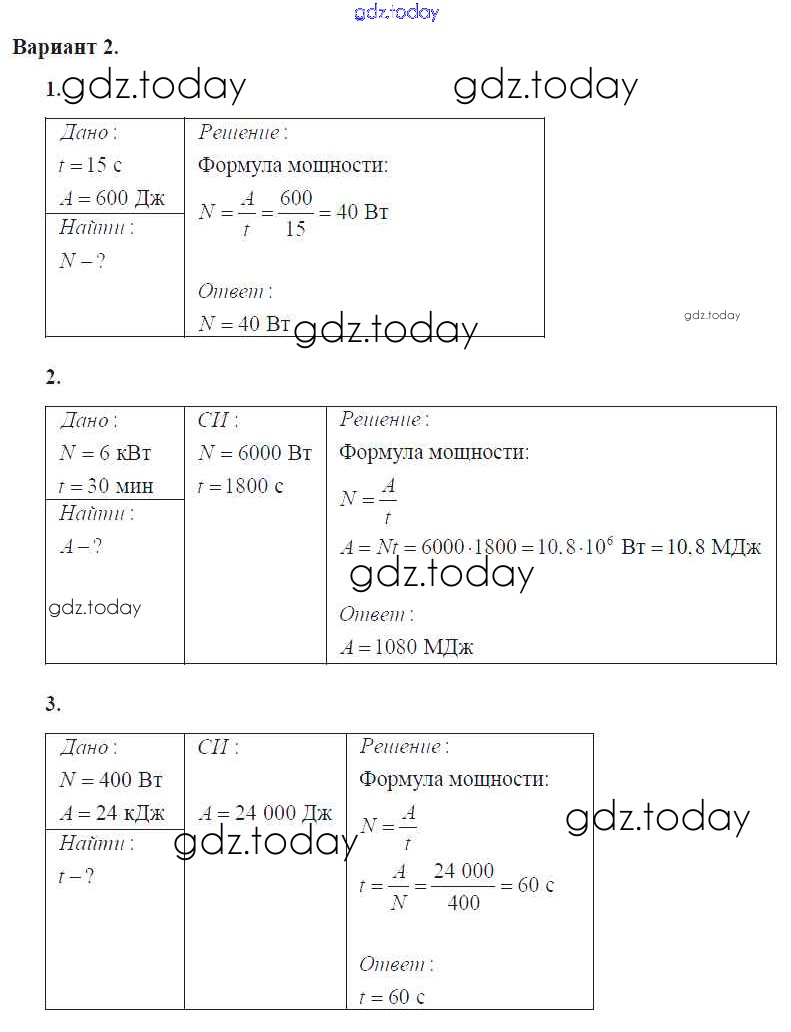 На страницах сайта gdz.today вы найдете учебный и вспомогательный материал, направленный на улучшения знаний школьной программы. ГДЗ - онлайн мир знаний СР №42. Мощность. Единицы мощности Решение к самостоятельным работам Вар. 2 Контрольным и самостоятельным работам по Физике для 7 класса Громцева Экзамен УМК 2020