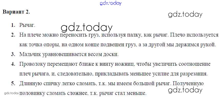 Ответы к СР №45. Рычаги в технике, быту и природе Решение к самостоятельным работам Вар. 2 Контрольным и самостоятельным работам по Физике для 7 класса Громцева Экзамен УМК 2020