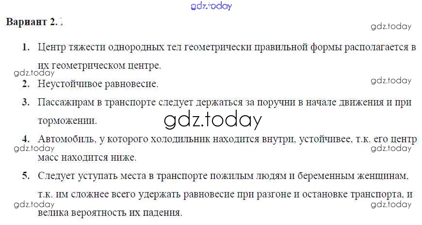 На страницах сайта gdz.today вы найдете учебный и вспомогательный материал, направленный на улучшения знаний школьной программы. ГДЗ - онлайн мир знаний СР №47. Центр тяжести. Условия равновесия тел Решение к самостоятельным работам Вар. 2 Контрольным и самостоятельным работам по Физике для 7 класса Громцева Экзамен УМК 2020