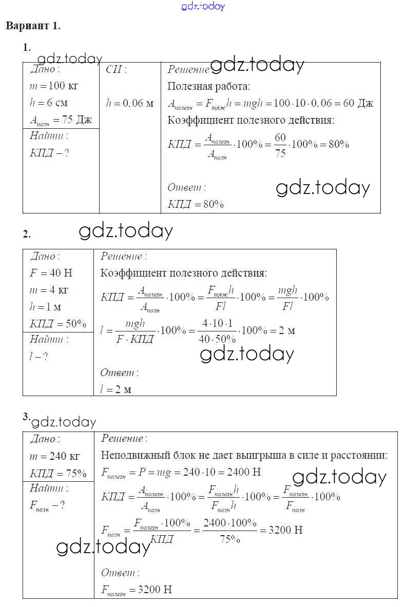 На страницах сайта gdz.today вы найдете учебный и вспомогательный материал, направленный на улучшения знаний школьной программы. ГДЗ - онлайн мир знаний СР №48. Коэффициент полезного действия механизма Решение к самостоятельным работам Вар. 1 Контрольным и самостоятельным работам по Физике для 7 класса Громцева Экзамен УМК 2020