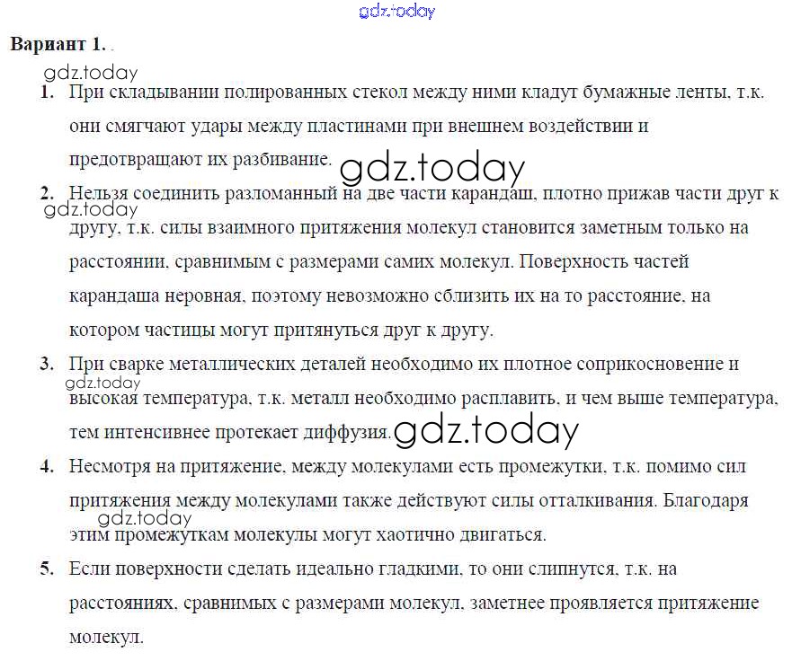 На страницах сайта gdz.today вы найдете учебный и вспомогательный материал, направленный на улучшения знаний школьной программы. ГДЗ - онлайн мир знаний СР №8. Взаимное притяжение и отталкивание молекул Решение к самостоятельным работам Вар. 1 Контрольным и самостоятельным работам по Физике для 7 класса Громцева Экзамен УМК 2020