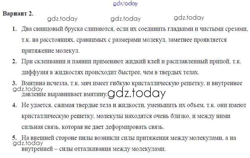 На страницах сайта gdz.today вы найдете учебный и вспомогательный материал, направленный на улучшения знаний школьной программы. ГДЗ - онлайн мир знаний СР №8. Взаимное притяжение и отталкивание молекул Решение к самостоятельным работам Вар. 2 Контрольным и самостоятельным работам по Физике для 7 класса Громцева Экзамен УМК 2020