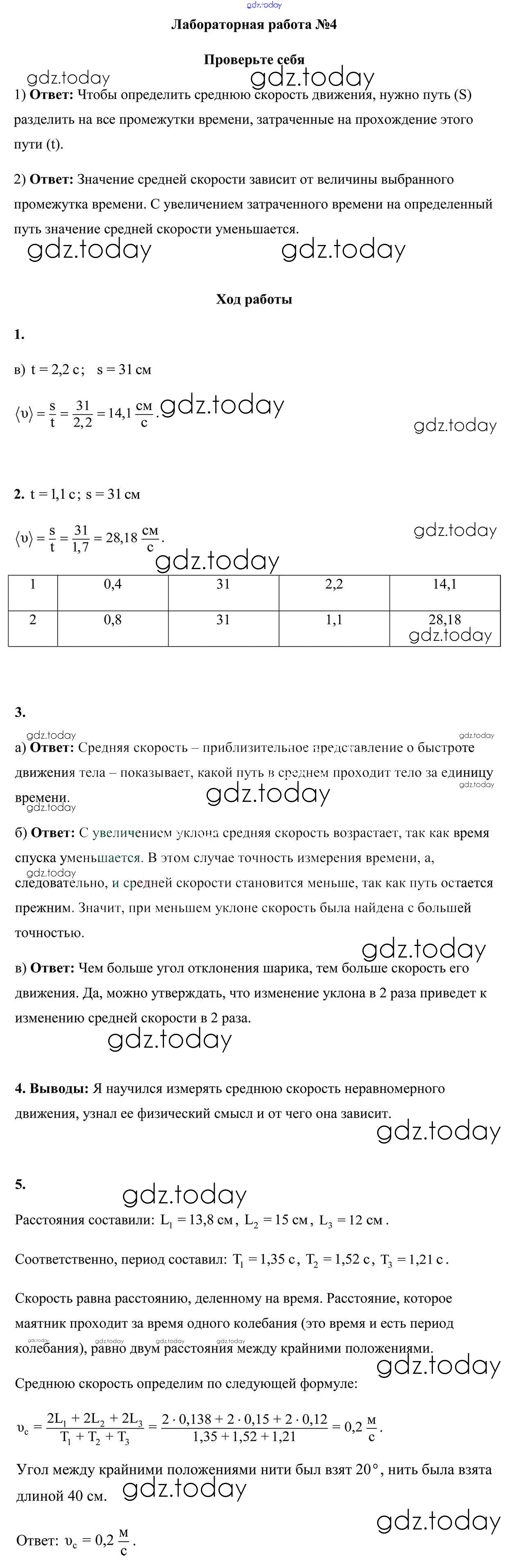 Ответы к Решение к лабораторным работам 4 Лабораторным работам по Физике для 7 класса Исаченкова, Лещинский Аверсэв 2016