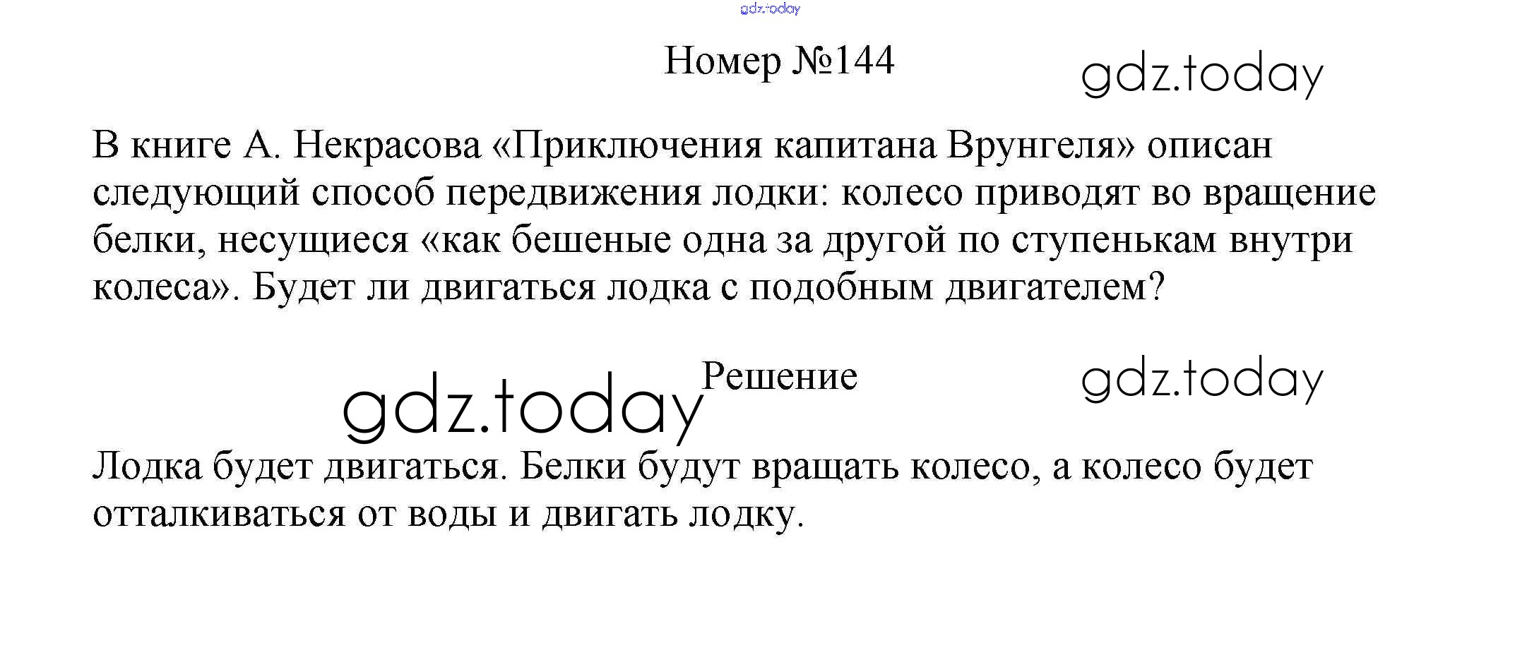 На страницах сайта gdz.today вы найдете учебный и вспомогательный материал, направленный на улучшения знаний школьной программы. ГДЗ - онлайн мир знаний Решение к заданиям 7 класс 144 Сборнику вопросов и задач по Физике для 7-9 класса Марон, Позойский Дрофа Вертикаль 2013