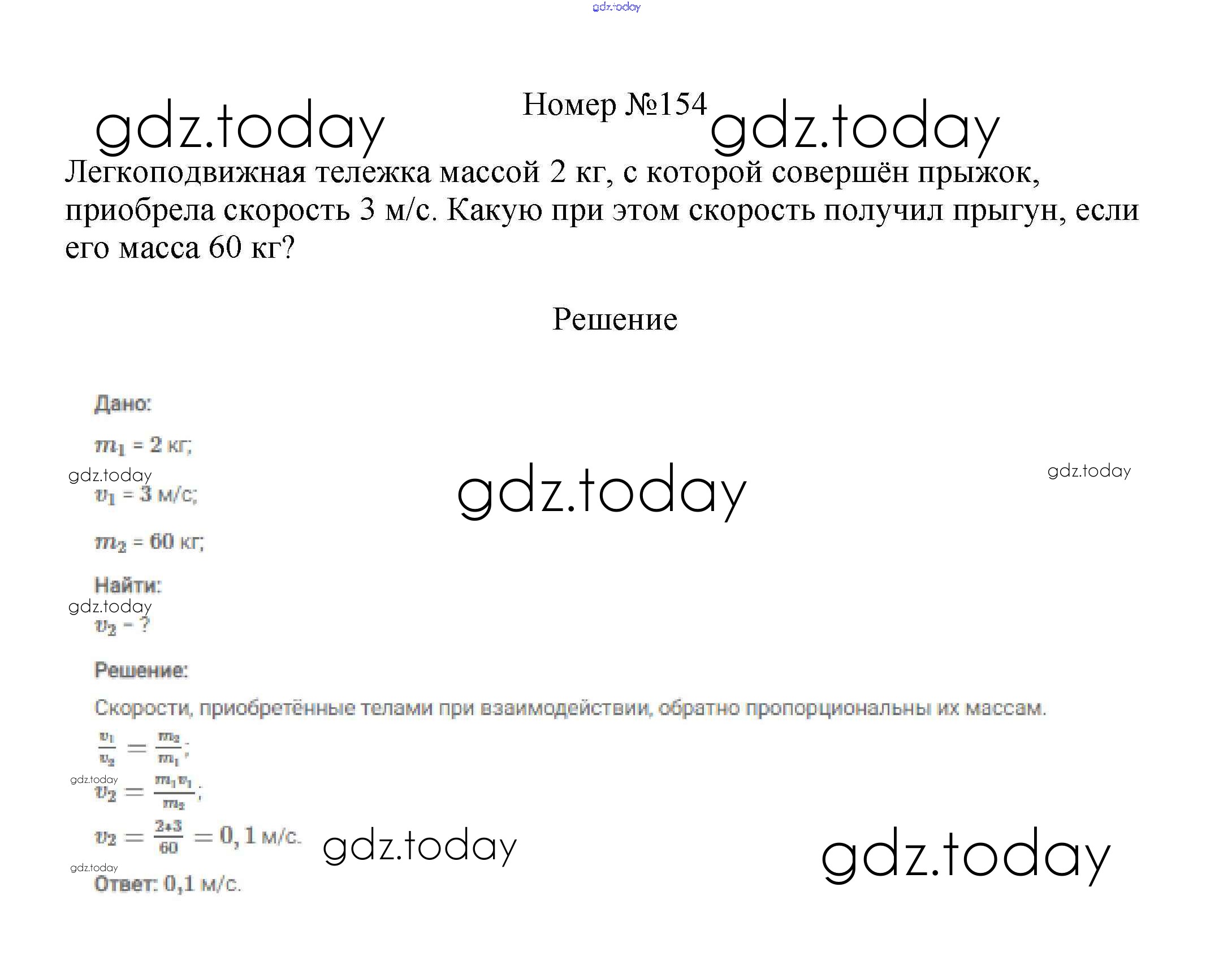На страницах сайта gdz.today вы найдете учебный и вспомогательный материал, направленный на улучшения знаний школьной программы. ГДЗ - онлайн мир знаний Решение к заданиям 7 класс 154 Сборнику вопросов и задач по Физике для 7-9 класса Марон, Позойский Дрофа Вертикаль 2013