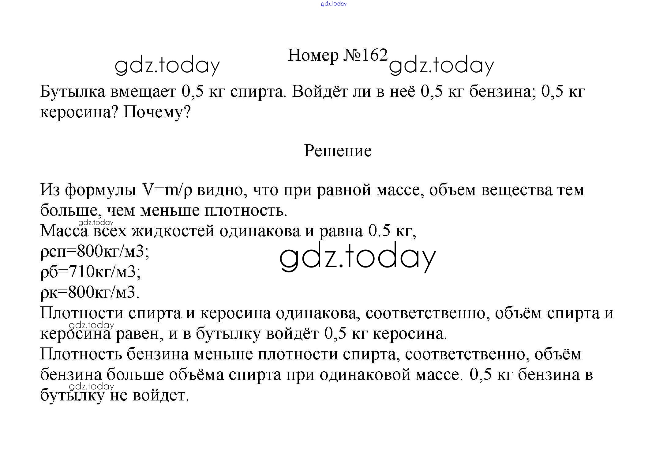 На страницах сайта gdz.today вы найдете учебный и вспомогательный материал, направленный на улучшения знаний школьной программы. ГДЗ - онлайн мир знаний Решение к заданиям 7 класс 162 Сборнику вопросов и задач по Физике для 7-9 класса Марон, Позойский Дрофа Вертикаль 2013