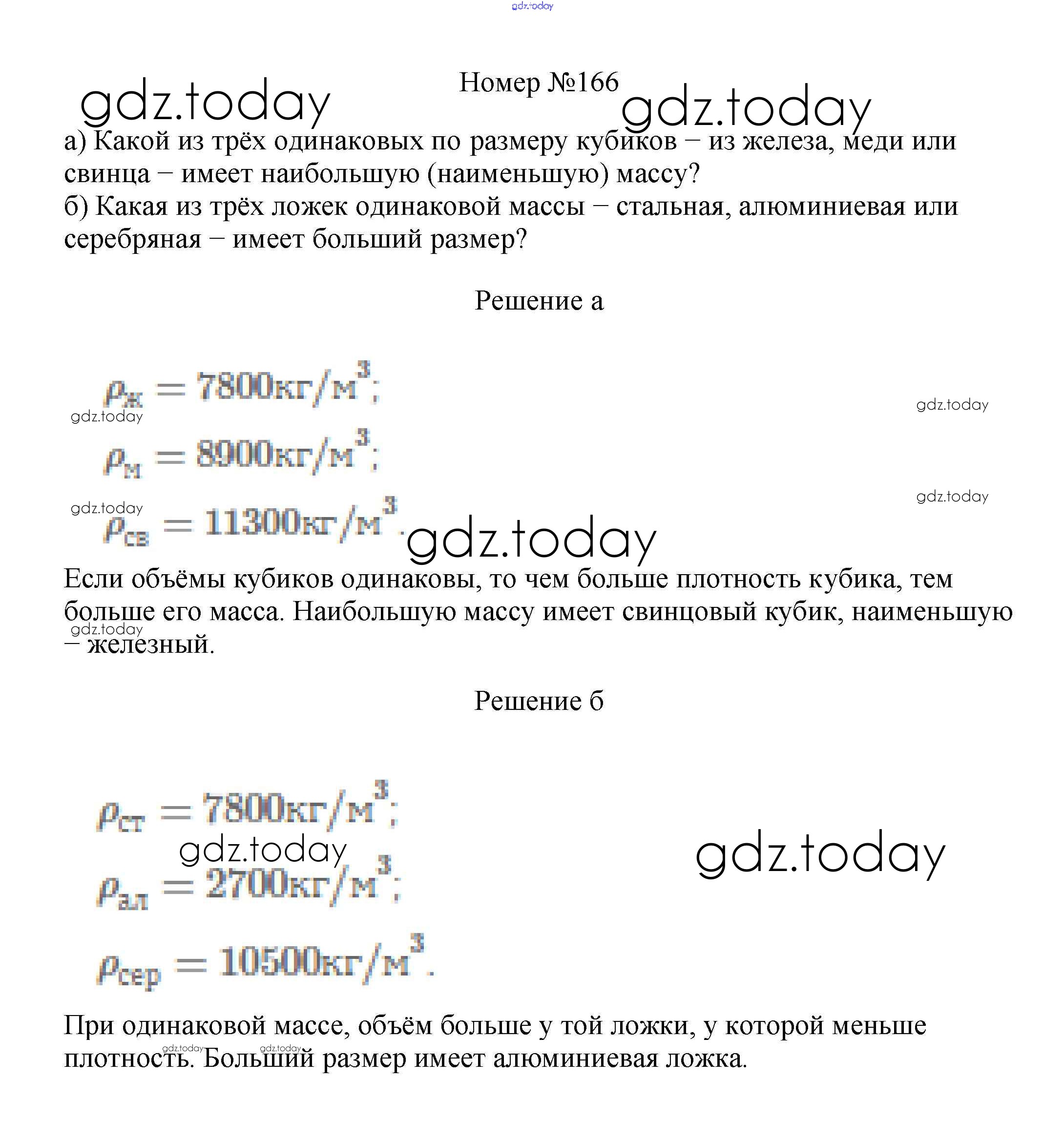 На страницах сайта gdz.today вы найдете учебный и вспомогательный материал, направленный на улучшения знаний школьной программы. ГДЗ - онлайн мир знаний Решение к заданиям 7 класс 166 Сборнику вопросов и задач по Физике для 7-9 класса Марон, Позойский Дрофа Вертикаль 2013