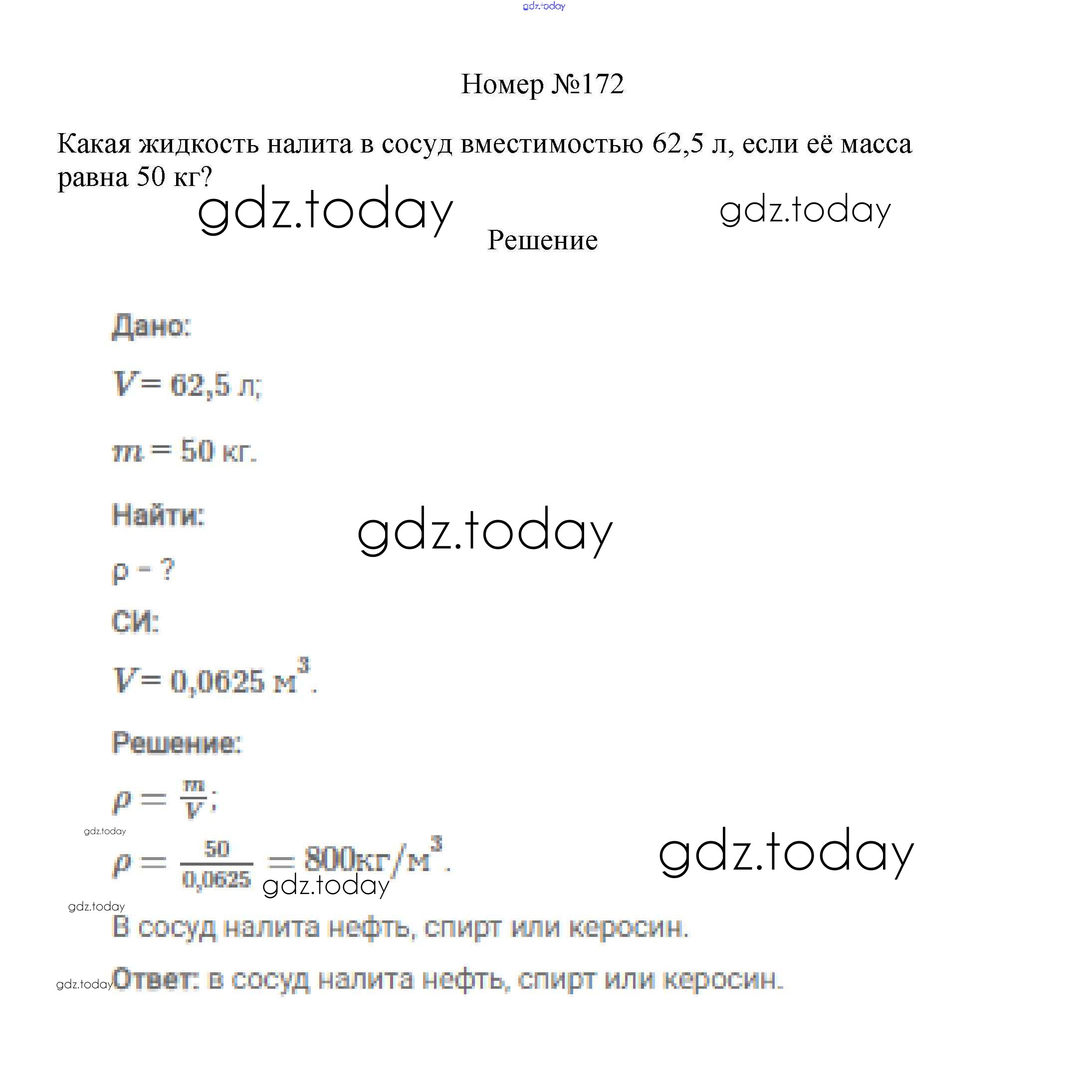 На страницах сайта gdz.today вы найдете учебный и вспомогательный материал, направленный на улучшения знаний школьной программы. ГДЗ - онлайн мир знаний Решение к заданиям 7 класс 172 Сборнику вопросов и задач по Физике для 7-9 класса Марон, Позойский Дрофа Вертикаль 2013