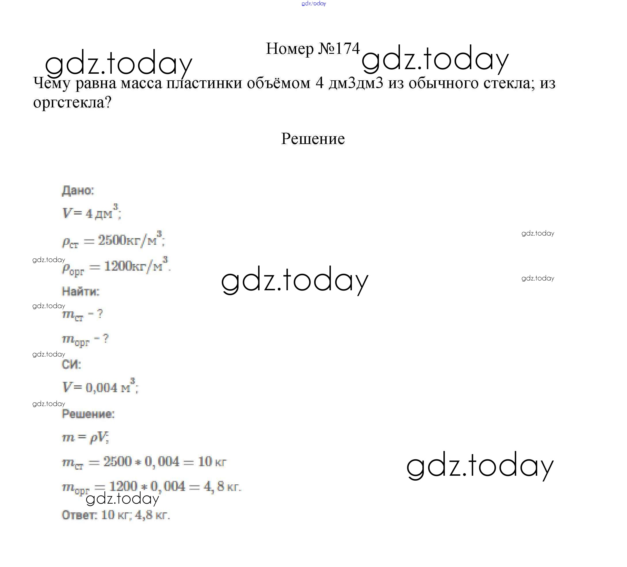На страницах сайта gdz.today вы найдете учебный и вспомогательный материал, направленный на улучшения знаний школьной программы. ГДЗ - онлайн мир знаний Решение к заданиям 7 класс 174 Сборнику вопросов и задач по Физике для 7-9 класса Марон, Позойский Дрофа Вертикаль 2013