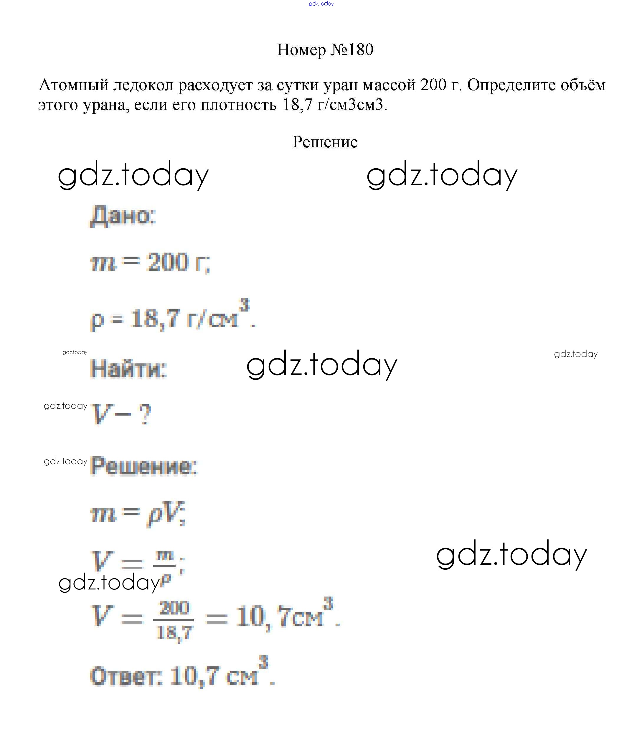 На страницах сайта gdz.today вы найдете учебный и вспомогательный материал, направленный на улучшения знаний школьной программы. ГДЗ - онлайн мир знаний Решение к заданиям 7 класс 180 Сборнику вопросов и задач по Физике для 7-9 класса Марон, Позойский Дрофа Вертикаль 2013