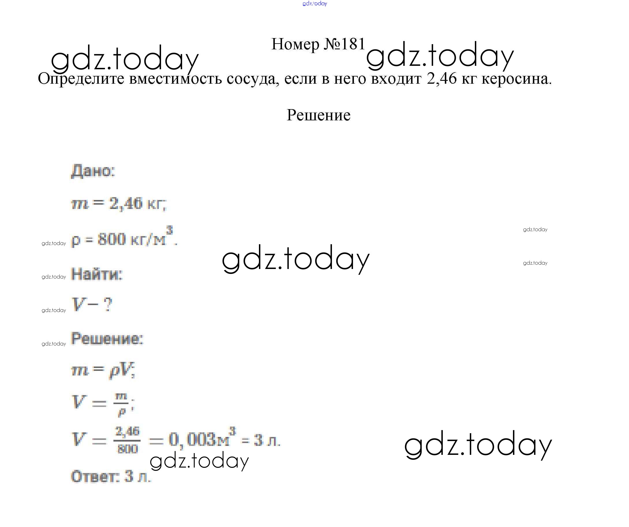 На страницах сайта gdz.today вы найдете учебный и вспомогательный материал, направленный на улучшения знаний школьной программы. ГДЗ - онлайн мир знаний Решение к заданиям 7 класс 181 Сборнику вопросов и задач по Физике для 7-9 класса Марон, Позойский Дрофа Вертикаль 2013