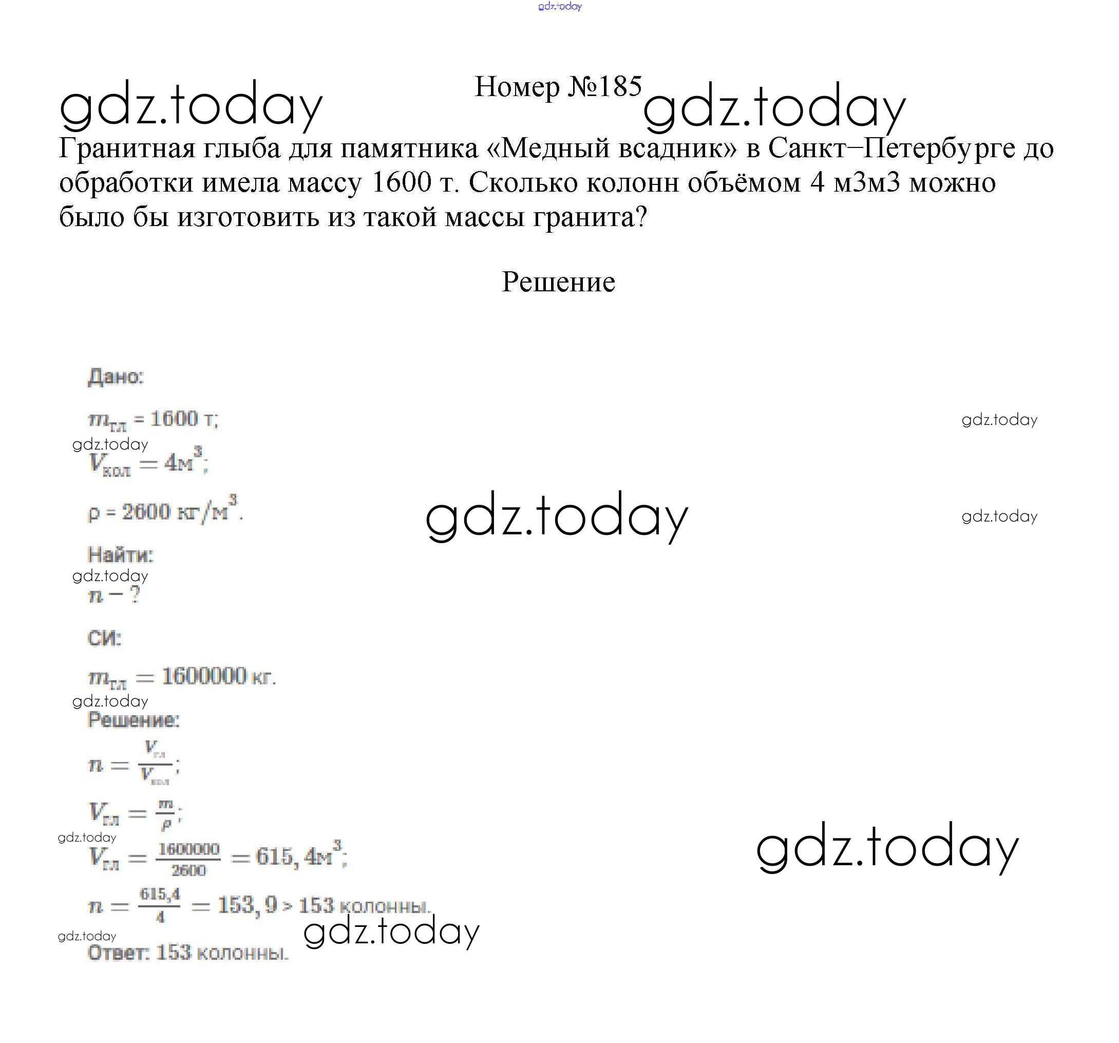 На страницах сайта gdz.today вы найдете учебный и вспомогательный материал, направленный на улучшения знаний школьной программы. ГДЗ - онлайн мир знаний Решение к заданиям 7 класс 185 Сборнику вопросов и задач по Физике для 7-9 класса Марон, Позойский Дрофа Вертикаль 2013