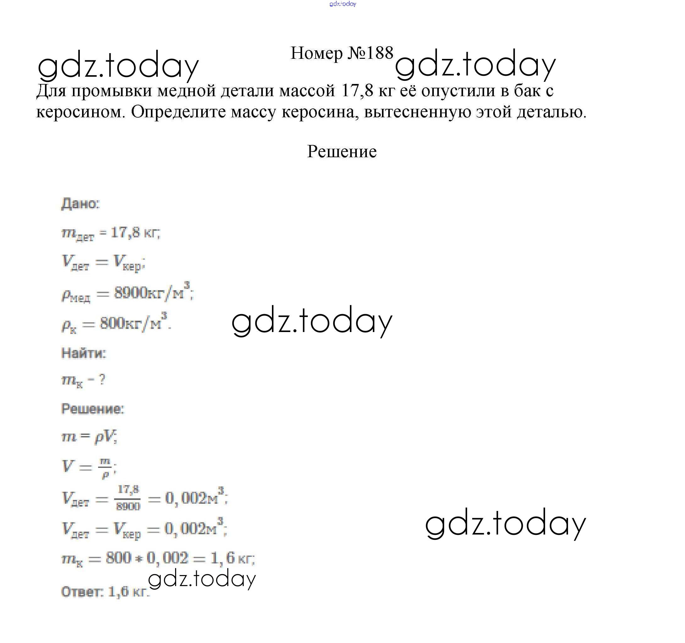 На страницах сайта gdz.today вы найдете учебный и вспомогательный материал, направленный на улучшения знаний школьной программы. ГДЗ - онлайн мир знаний Решение к заданиям 7 класс 188 Сборнику вопросов и задач по Физике для 7-9 класса Марон, Позойский Дрофа Вертикаль 2013