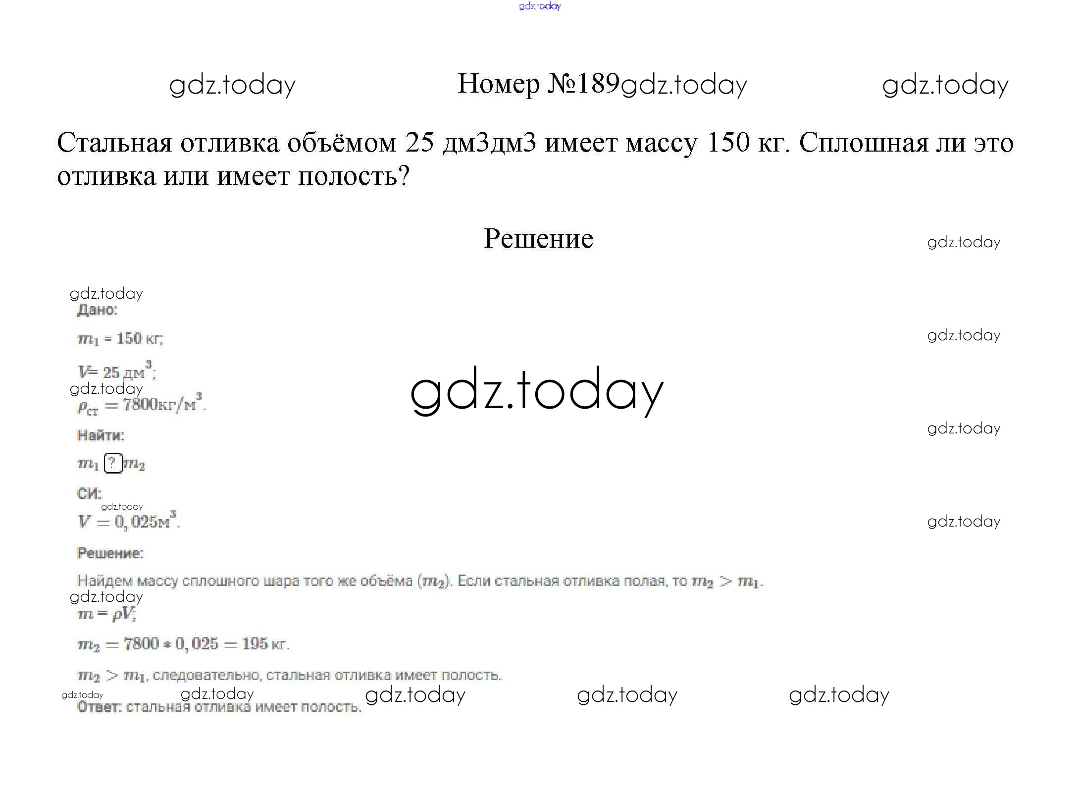 На страницах сайта gdz.today вы найдете учебный и вспомогательный материал, направленный на улучшения знаний школьной программы. ГДЗ - онлайн мир знаний Решение к заданиям 7 класс 189 Сборнику вопросов и задач по Физике для 7-9 класса Марон, Позойский Дрофа Вертикаль 2013